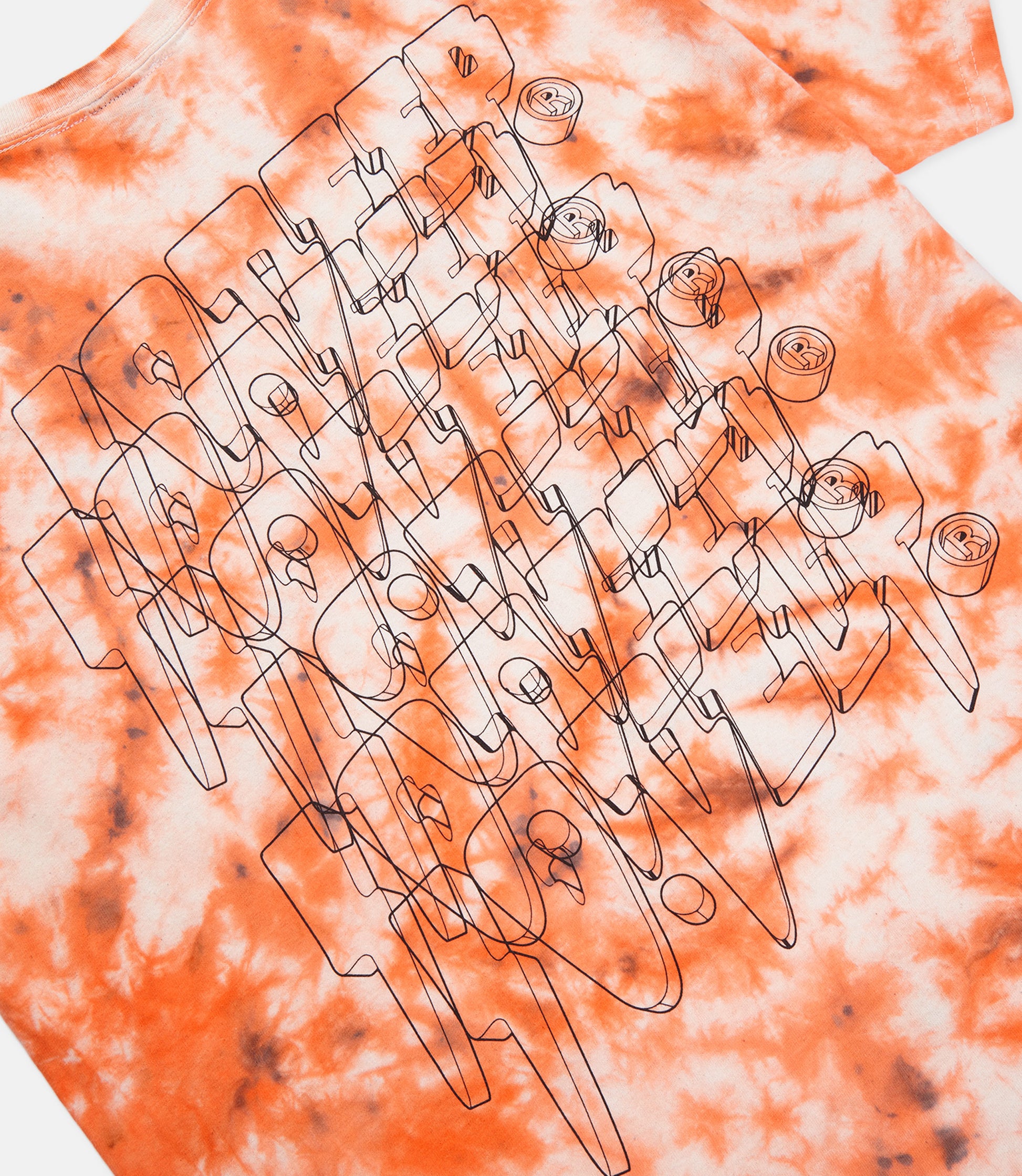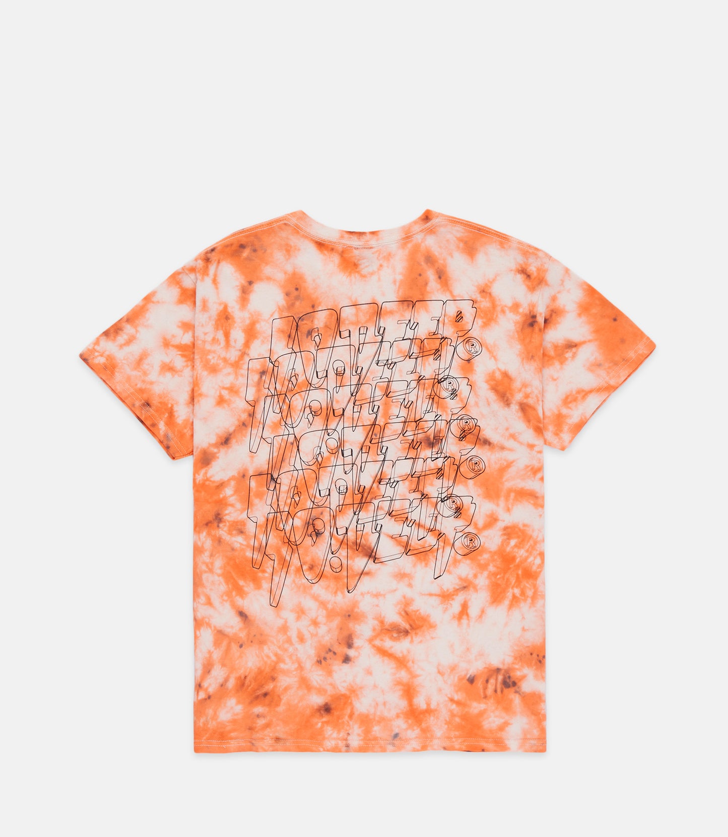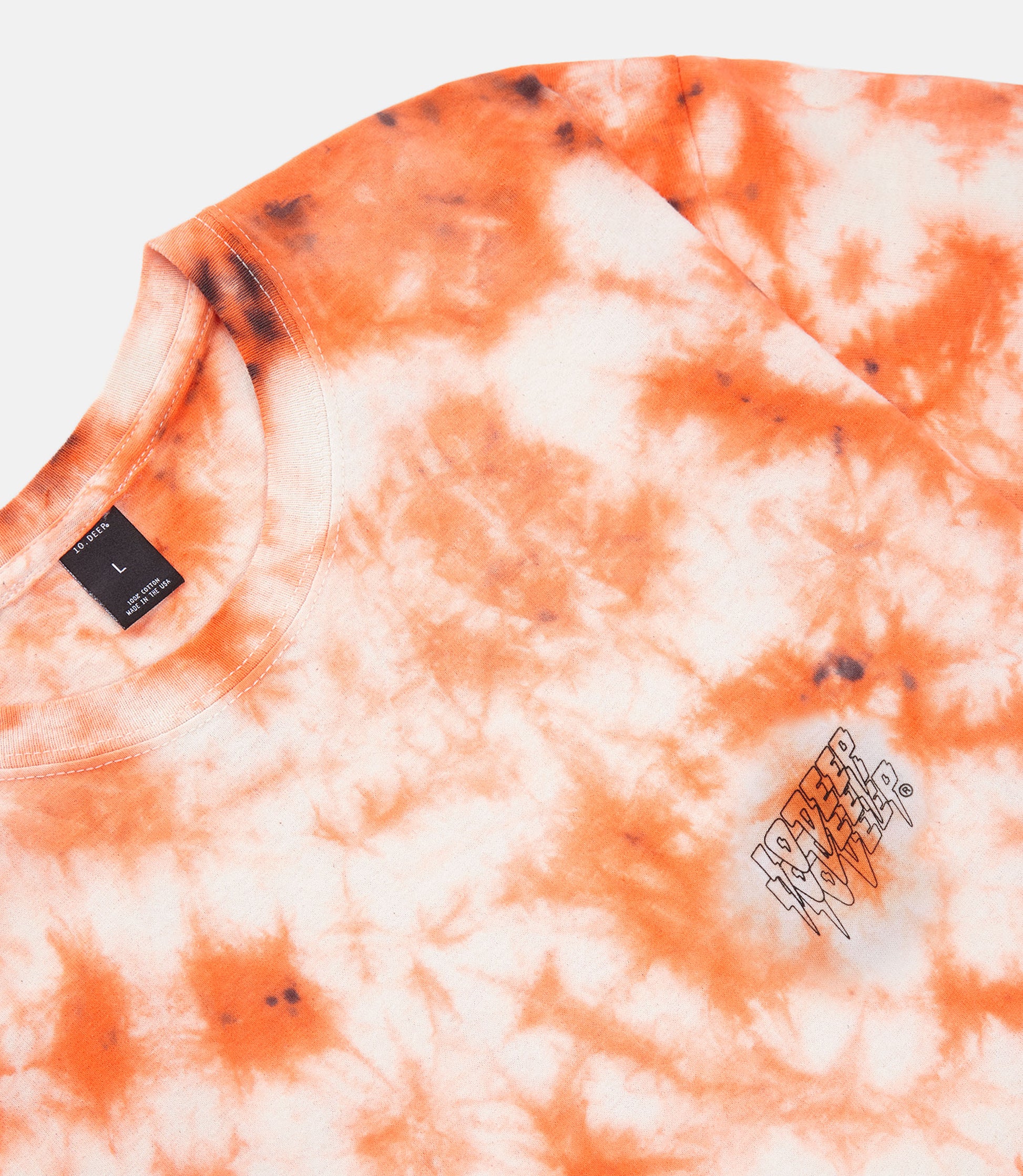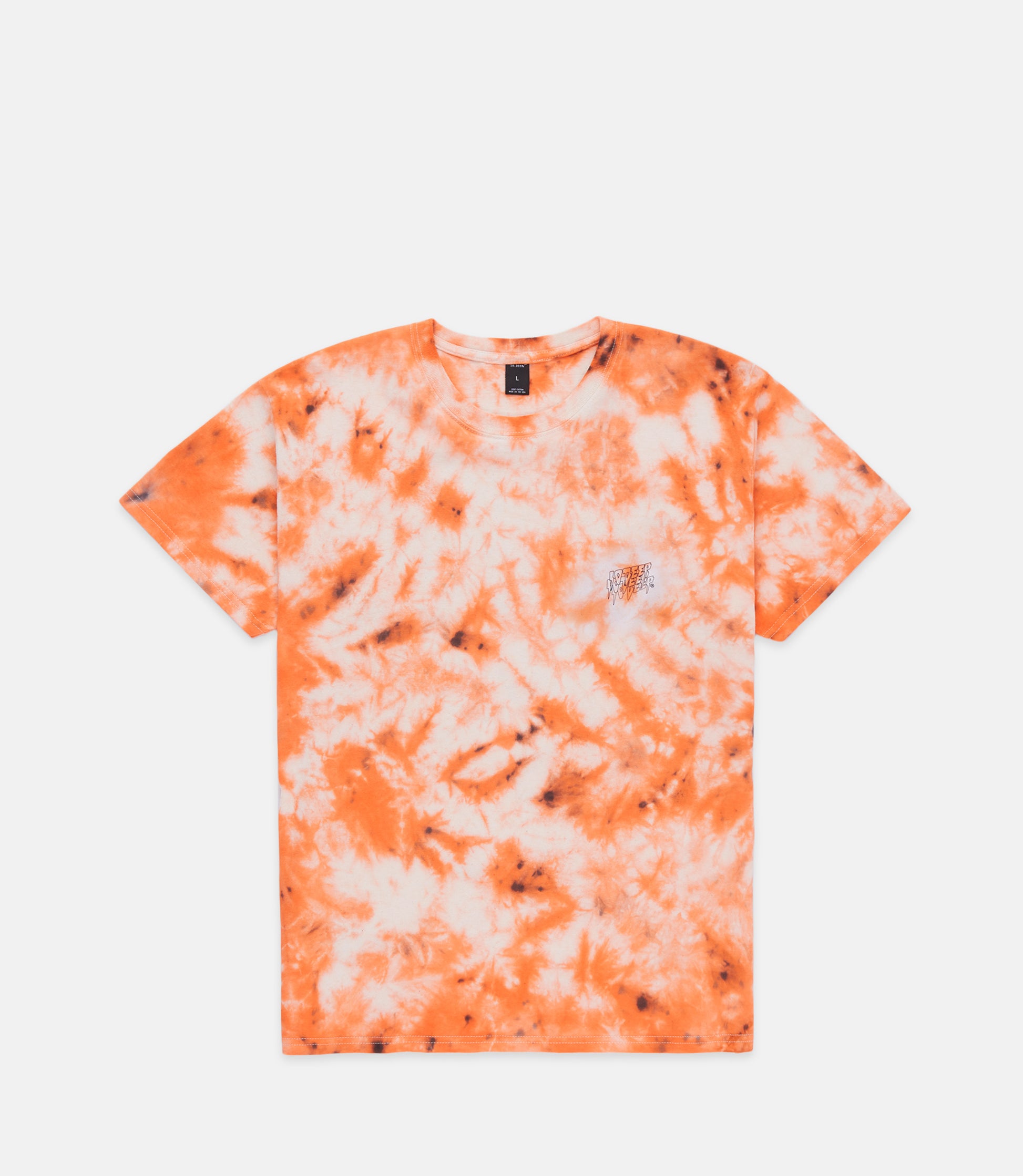 Fresh take on a classic design! Features a Sound and Fury stacked graphic on a custom orange tie dyed tee.
