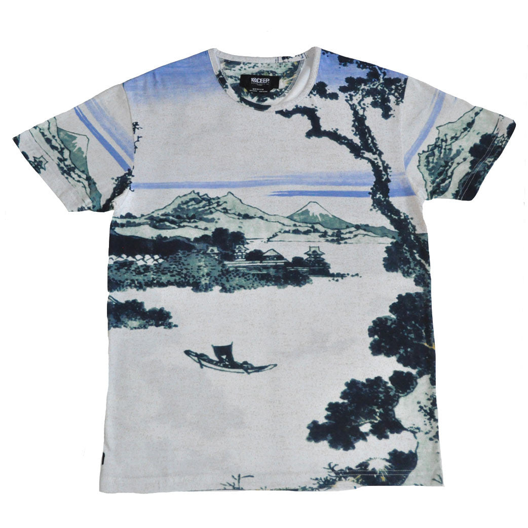 Paying tribute to the landscape and daily life of Japan during the Edo period. Custom sublimated print tee (image repeats on the back).