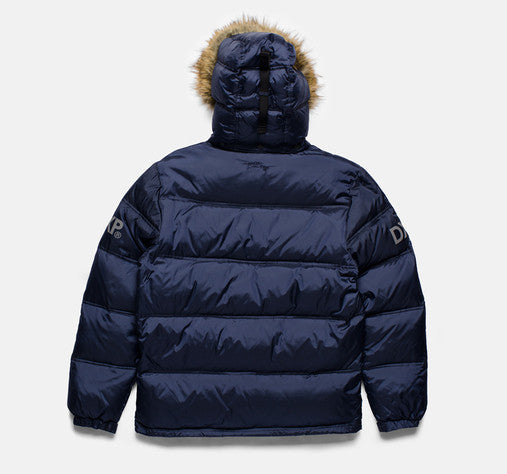 The updated version of the Ice Station Jacket with a detachable snorkel style hood and faux fur trim. Triple stuffed down jacket with 3M reflective screen prints on both sleeves. Jacket features two way zippered front, side entry front pocket, and adjustable drawcord hood.
