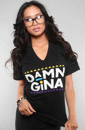 Adapt - Damn Gina Women's V-Neck Shirt, Black