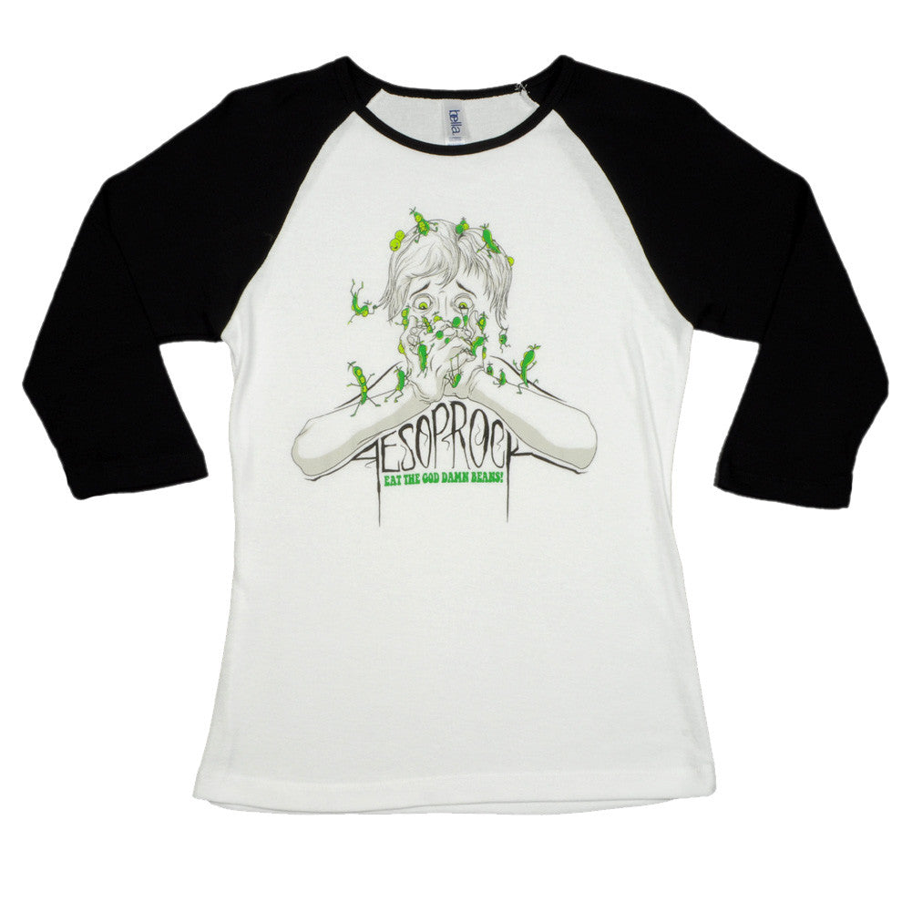 Aesop Rock - Beans Women's Baseball Shirt, White/Black