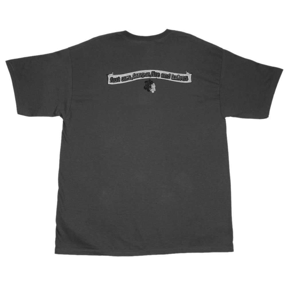 The shirt for Aesop's release, Fast Cars, Danger Fire & Knives.