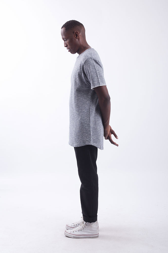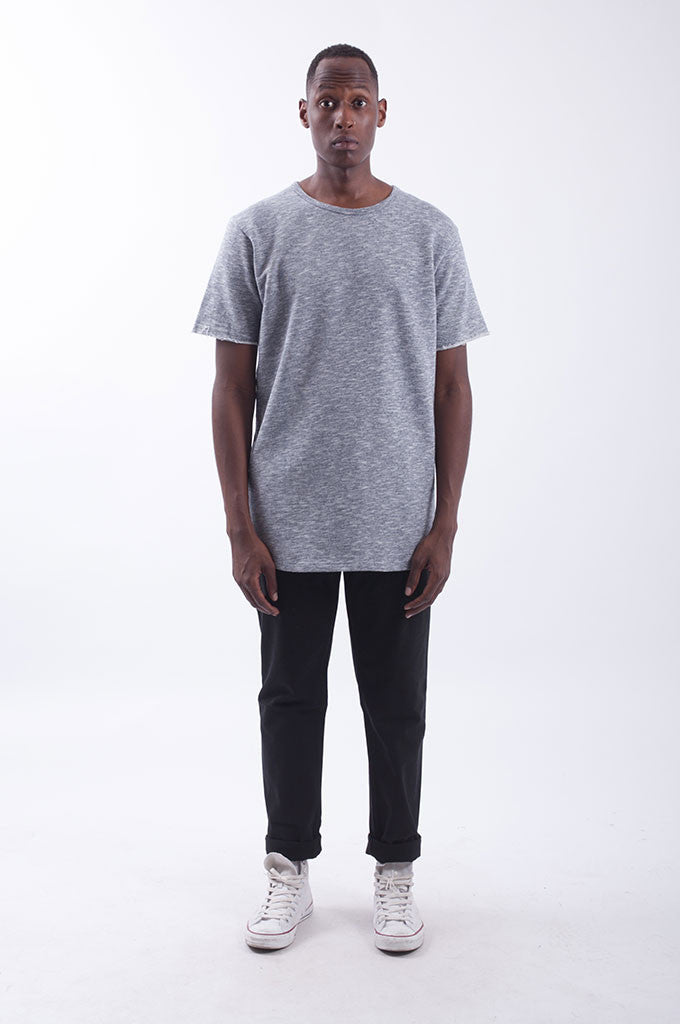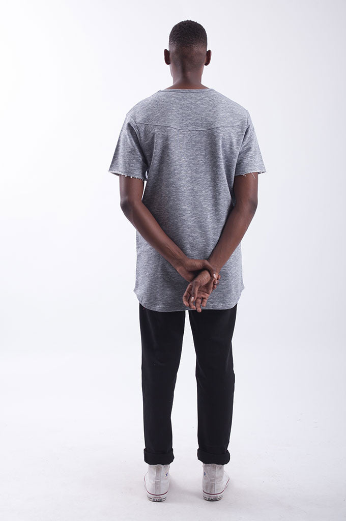 The basics series focuses on minimalism and high quality design. Features a slightly elongated body with a scalloped bottom. Unfinished raw cut sleeves and bottom hem. Made from Indian cotton and silicon washed for an extra soft hand.