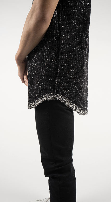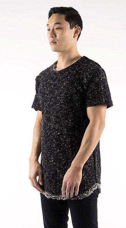 Custom textured tee with a slightly elongated length and scalloped bottom.