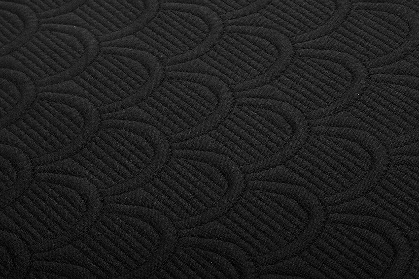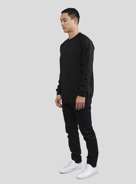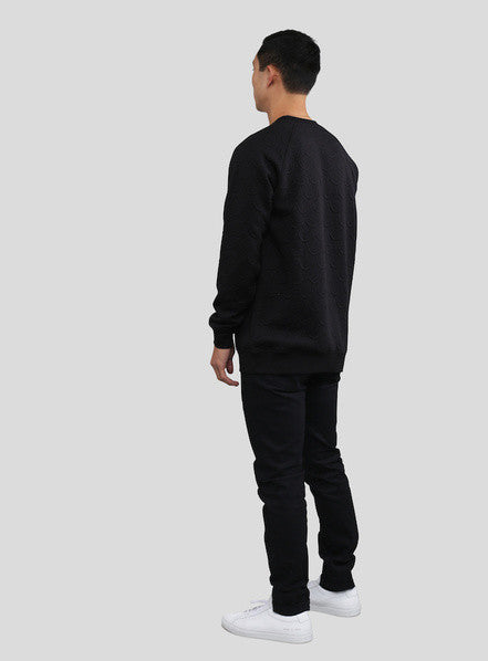 Crewneck sweatshirt with a slightly elongated body. Features and allover scalloped pattern.