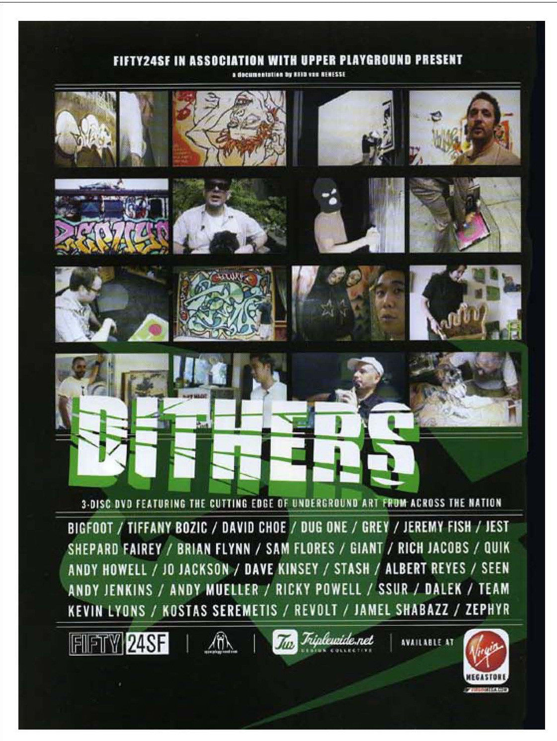 FIFTY24SF in collaboration with Upper Playground is proud to announce Dithers, an extraordinary showcase DVD featuring some of today's most influencial fine, graffiti and street artist, designer and photographers. The double-sided DVD features interviews with 30 artists. Plus get the bonus DVD with interviews by famous street photographer Ricky Powell.
