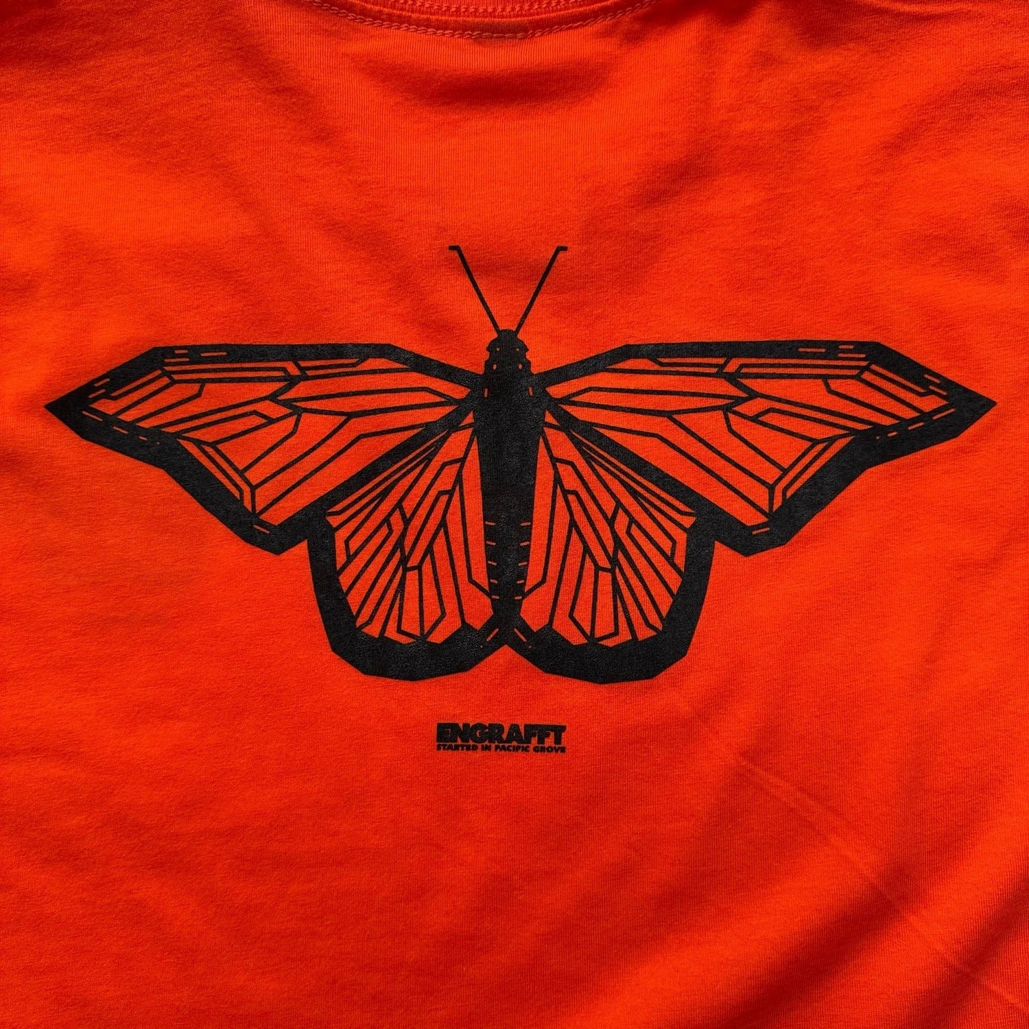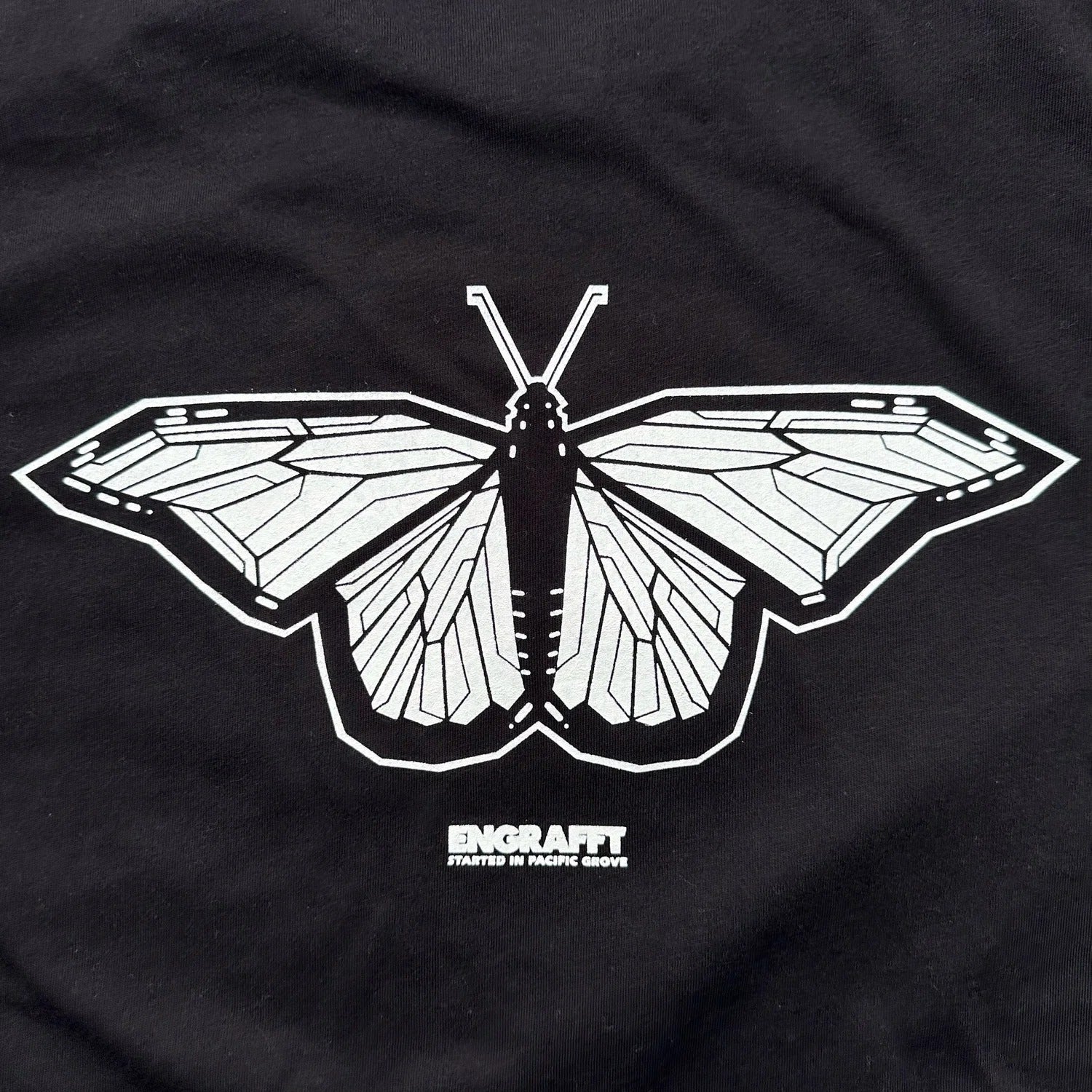 The Fragment Monarch Tee flys in with a new butterfly design inspired by ENGRAFFT's roots in Pacific Grove, CA where the brand began in 2014 and founder Derek Hanneman partly grew up and spent much of his twenties. This design draws inspiration from Monarch butterflies, which migrate, or “overwinter”, to Pacific Grove every year. Because of this, Pacific Grove is known as “Butterfly Town U.S.A”. The design features Derek’s “Fragments Living Style”. The Fragment Monarch design is featured on front and back of this high quality tee. On the sleeve is the signature “Multi-symbol” print.
