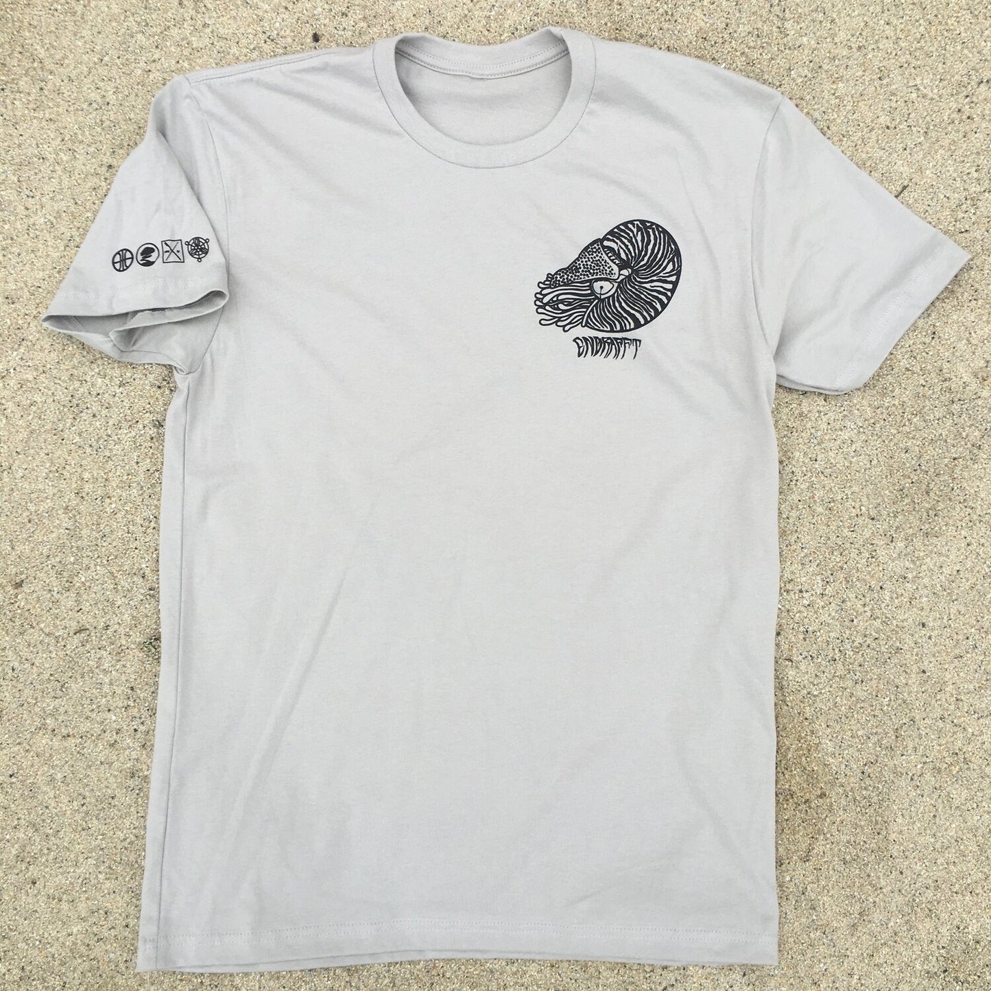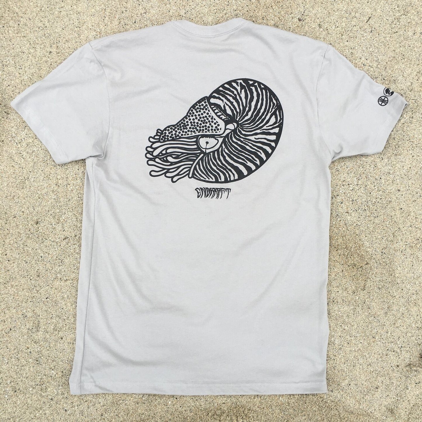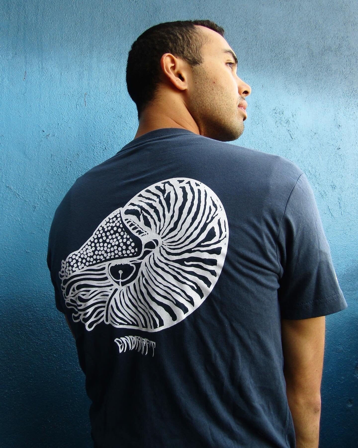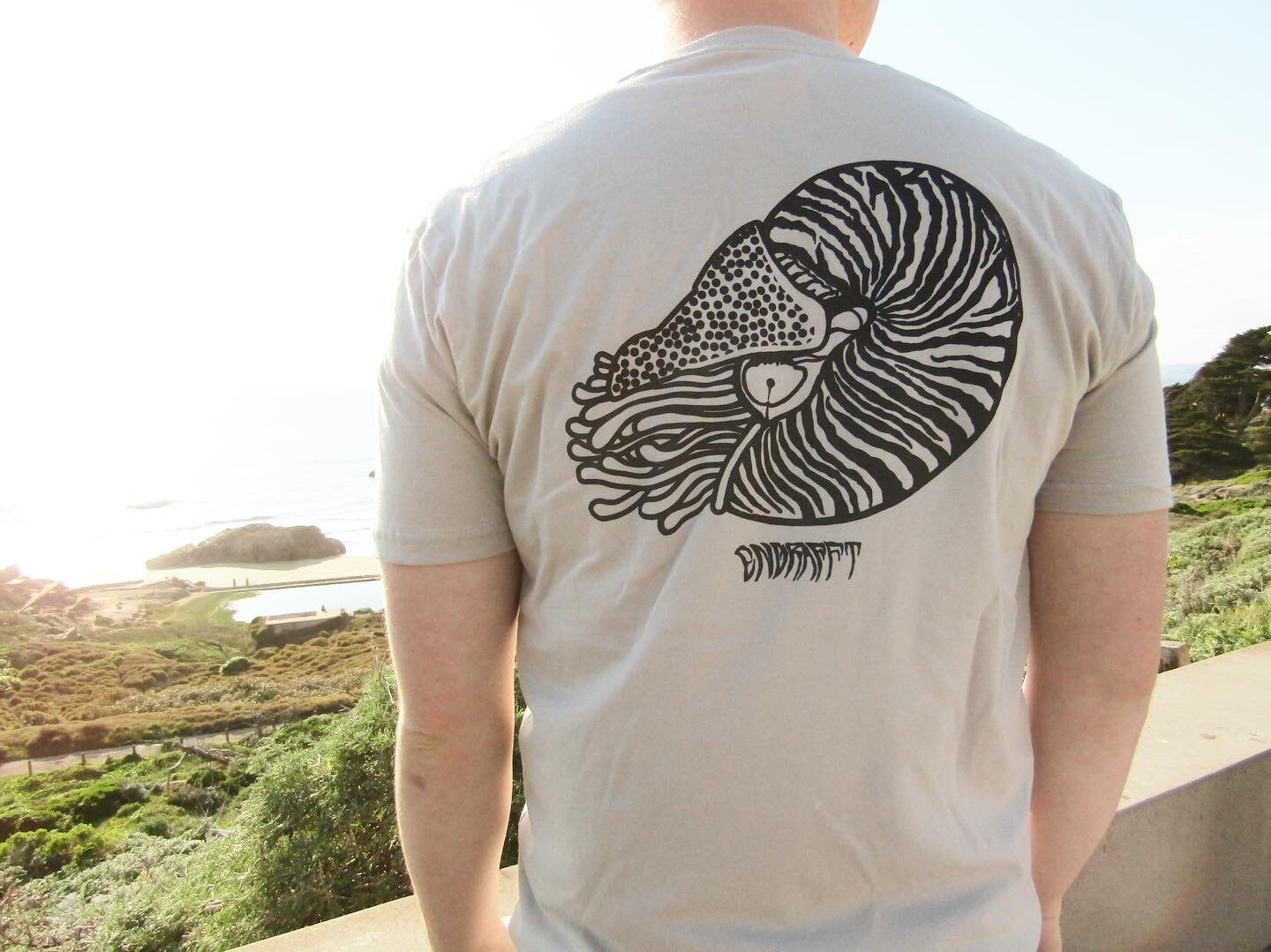 The Tendril Nautilus Tee introduces another cephalopod into the Grafted Art Clothing & Goods line- the nautilus- infused with one of ENGRAFFT creator Derek Hanneman’s signature ‘living’ art styles called “Tendrils”. Look closely and you’ll find ENGRAFFT written inside the shell of the design. Also featuring an original font inspired by Nautilus stripes underneath the creature.