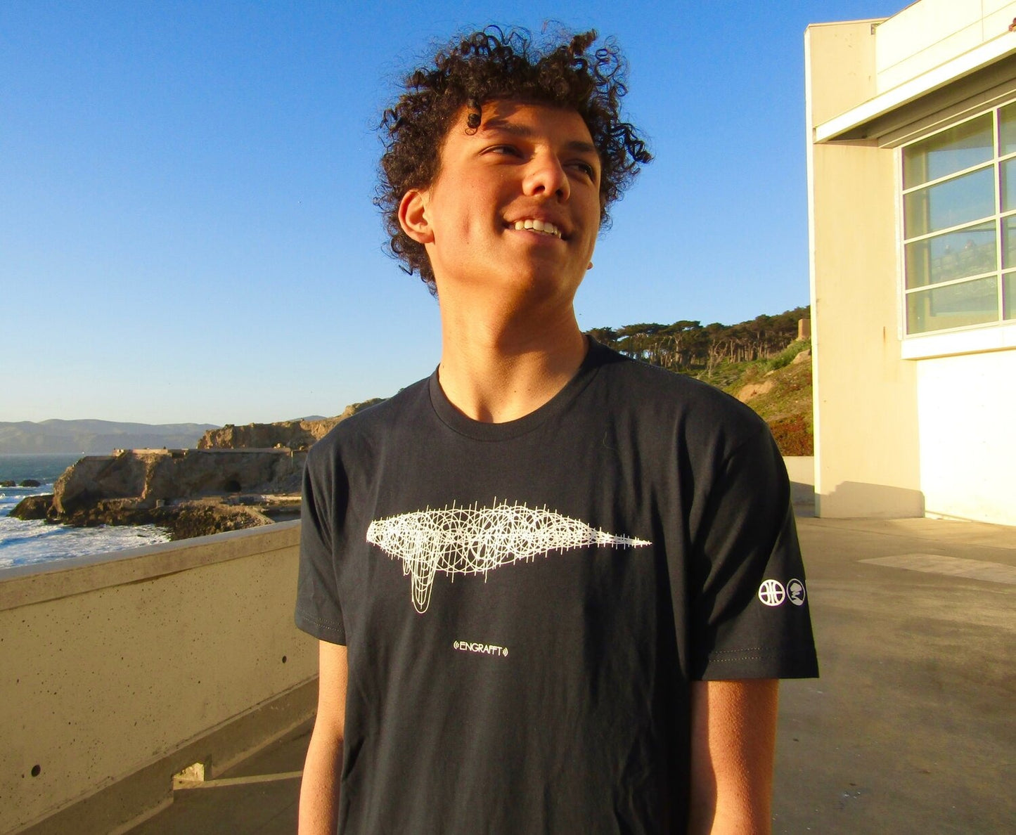 The Whalesong Wavelength Tee introduces a long requested sea creature to the ENGRAFFT line, the whale. On the front of this super soft tee is the Whalesong Wavelength graphic, on the sleeve is the signature Multi-symbol print and on the back is ENGRAFFT’s Submersible. The submersible contains a subtle nod to the 831, the area code of the Monterey Bay, where ENGRAFFT has roots and gets much of the ocean inspiration from.