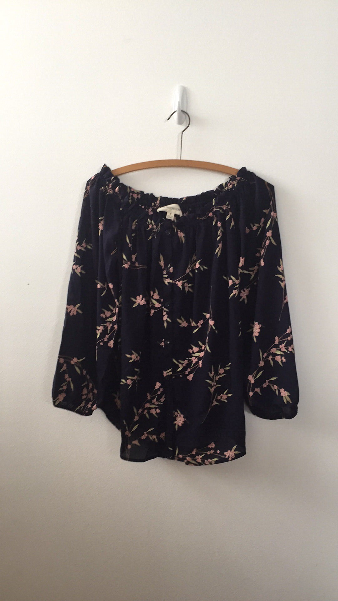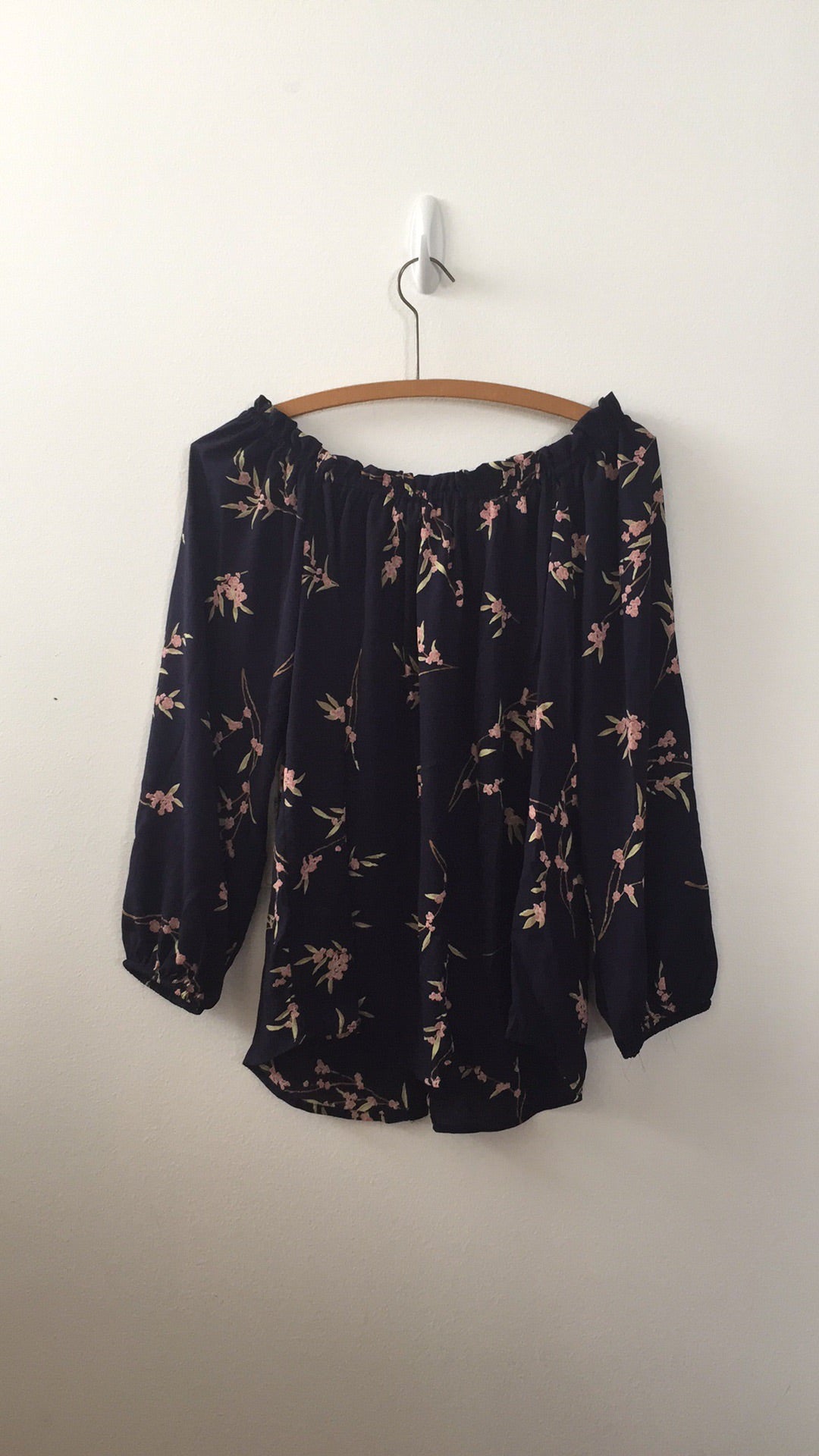 Cherry Blossom Off Shoulder Women's Top, Navy/Pink