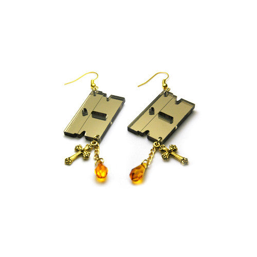 Beautifully etched lucite razor earrings highlighted with swarovski crystals.