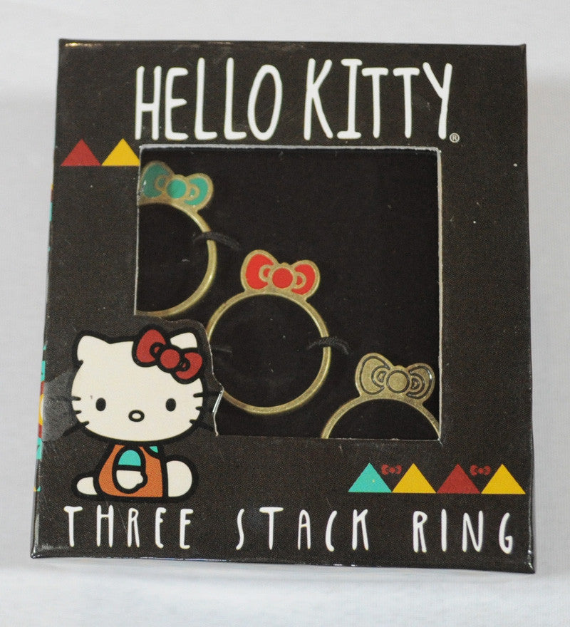 Hello Kitty Southwestern 3 Stack ring. Turquoise, red, and gold Hello Kitty bows which can be worn stacked or separately. Lead and nickel free.