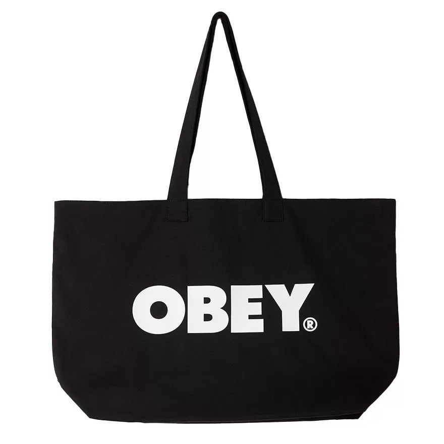 Cotton canvas oversized tote bag with large OBEY logo screen print.