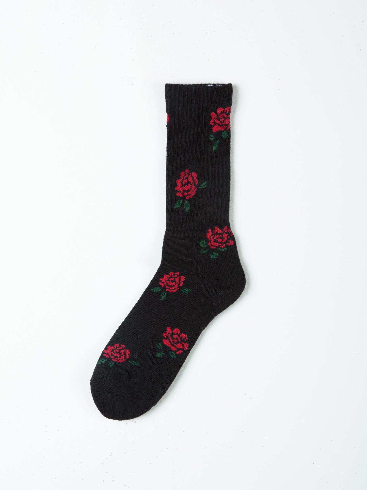 Classic tube sock in rose print with interior terry padding and OBEY logo.