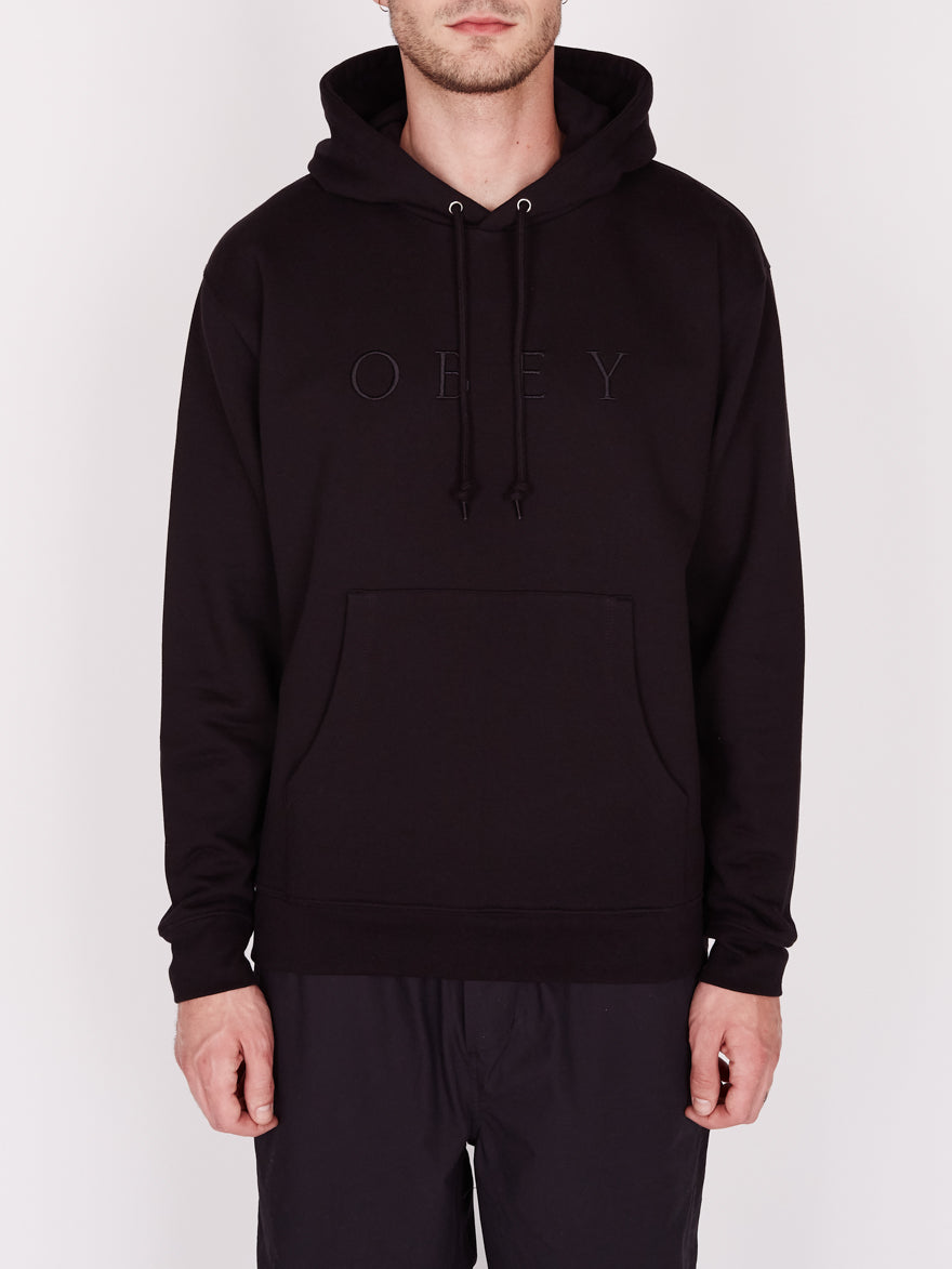 Custom fit fleece pullover hoodie with pouch pocket and solid rib trims. Tonal OBEY embroidery.