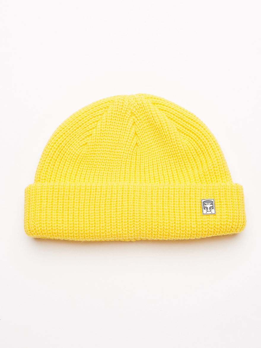 Extra shallow knit beanie with rolled cuff and removable logo pin in a fresh new shade for the season.