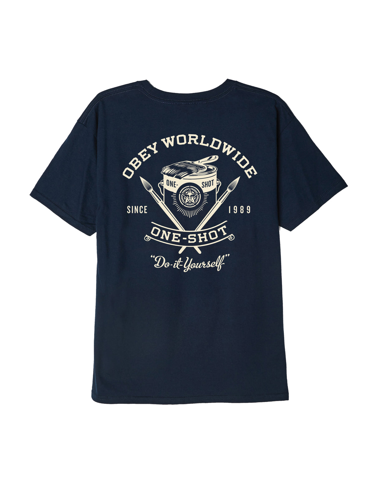 "Do it yourself"...you only have one-shot. Regular fit tee with OBEY One-Shot image over left chest and larger back print. 100% Cotton