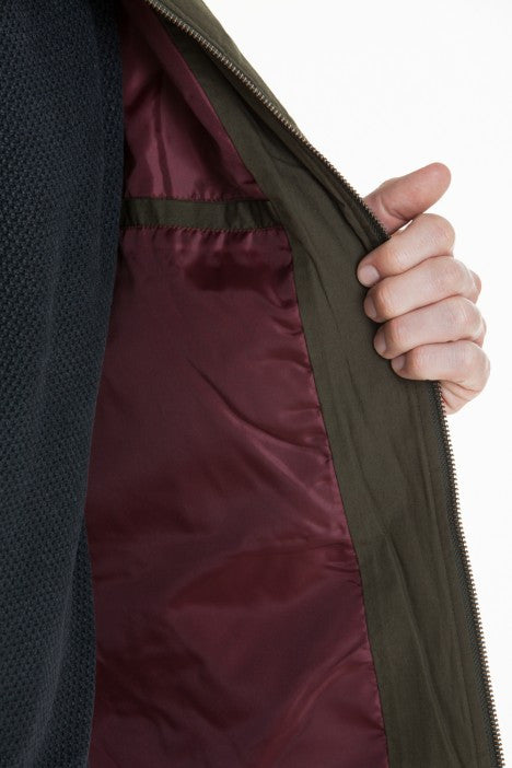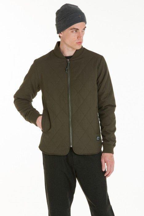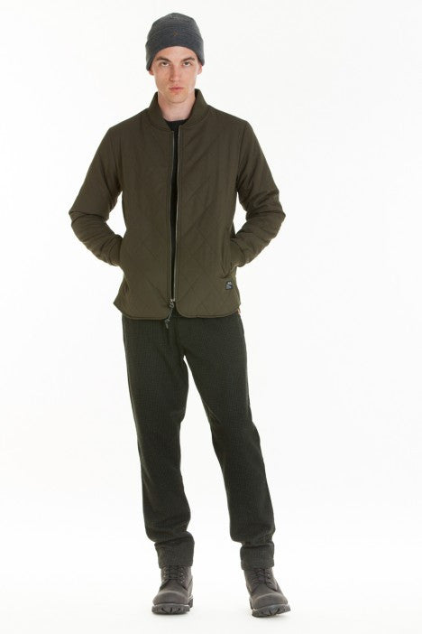 Slim fit liner jacket with lightly insulated body & sleeve. Diamond quilting on exterior.