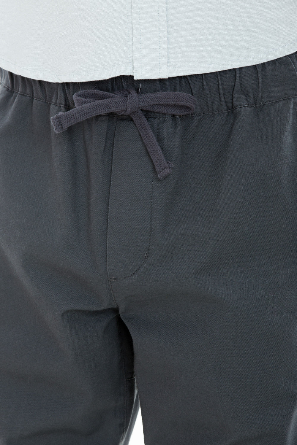 Military influenced heavy slub twill. Relaxed fit climber pants with elastic waist and interior drawcords. Features two side and back pockets and crotch gusset.