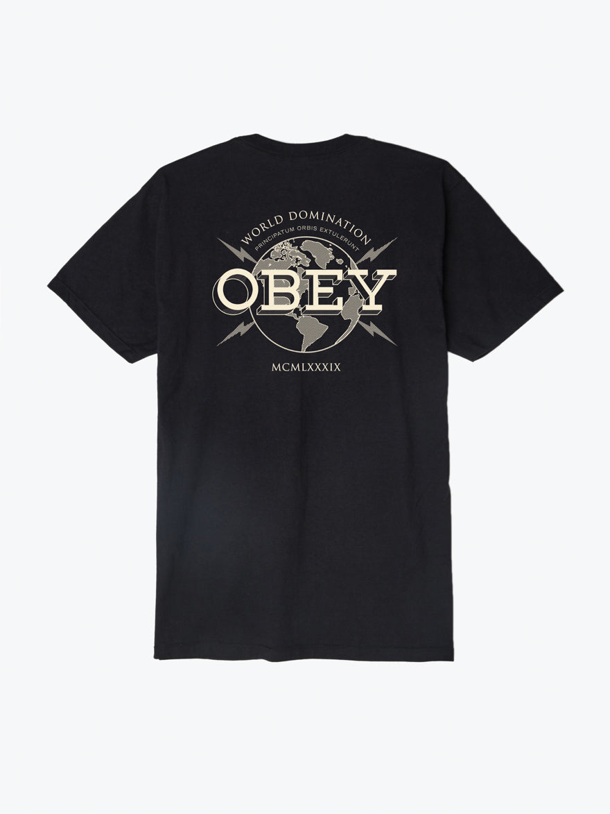 Heavyweight cotton on a regular fit tee. Small Obey World Domination print over the left chest and larger version of the same print on the back.