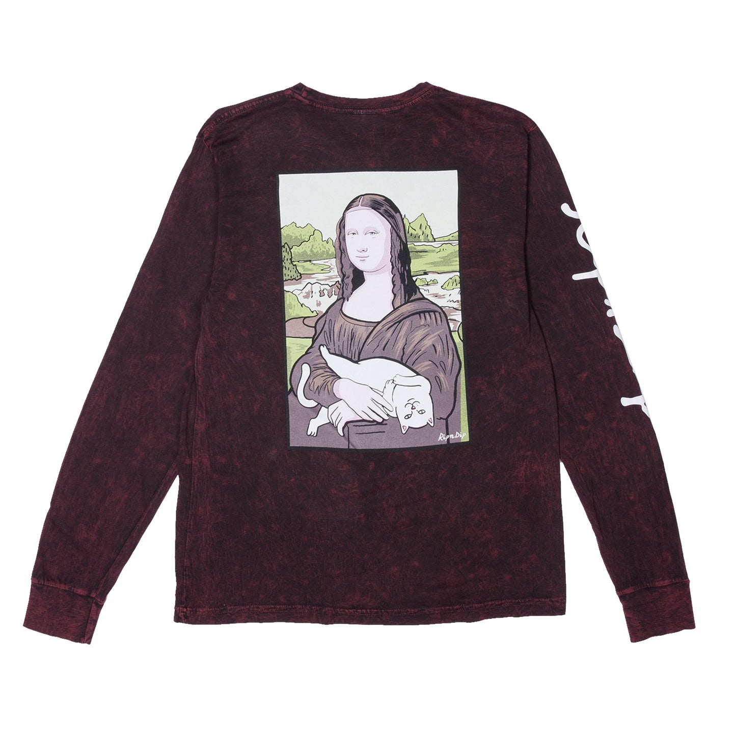 An instant masterpiece! Features Nermal posing for a portrait with the world's most famous Renaissance woman. Screen printed graphic across the back and RIPNDIP logo on the right sleeve. Red bleached mineral wash construction.