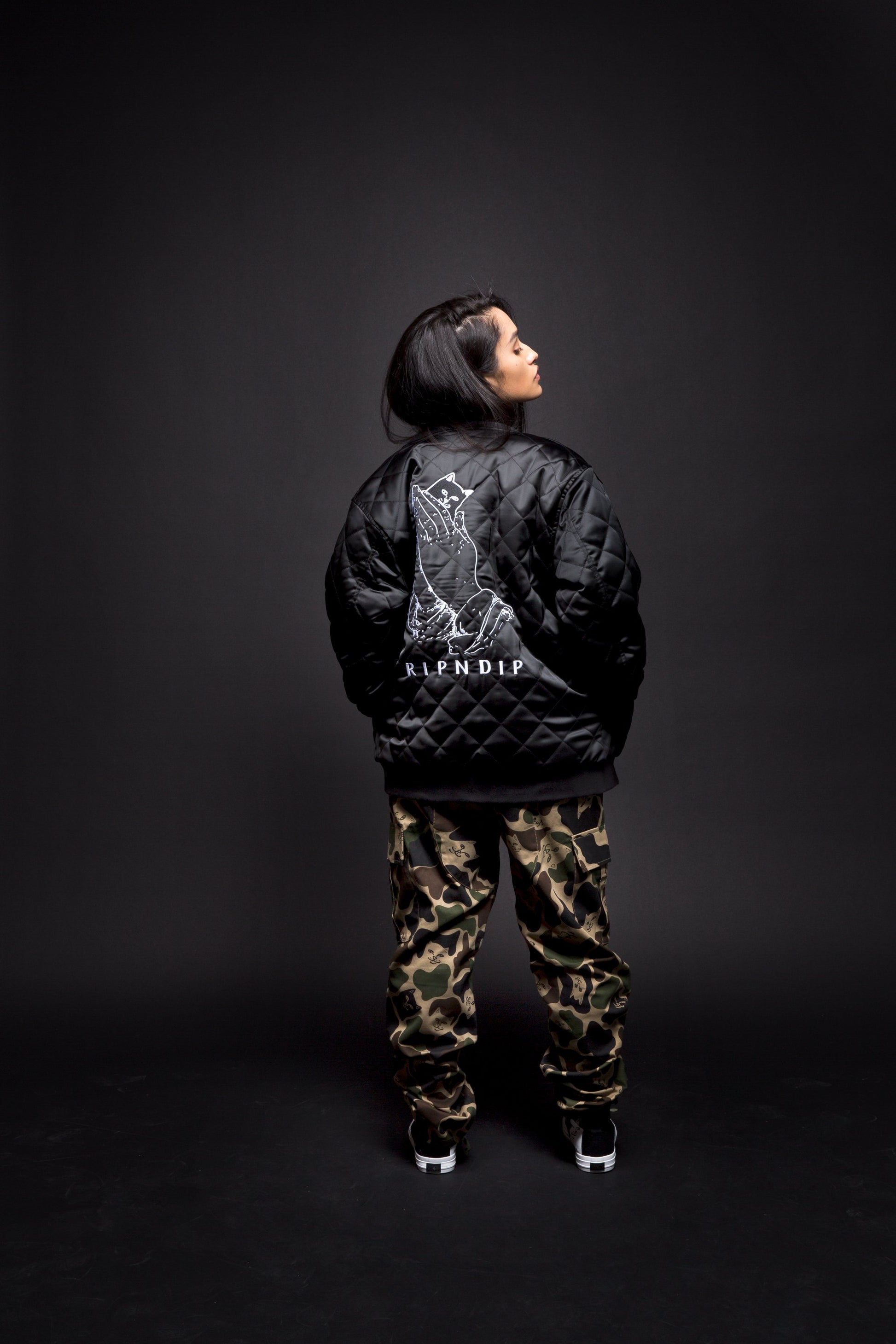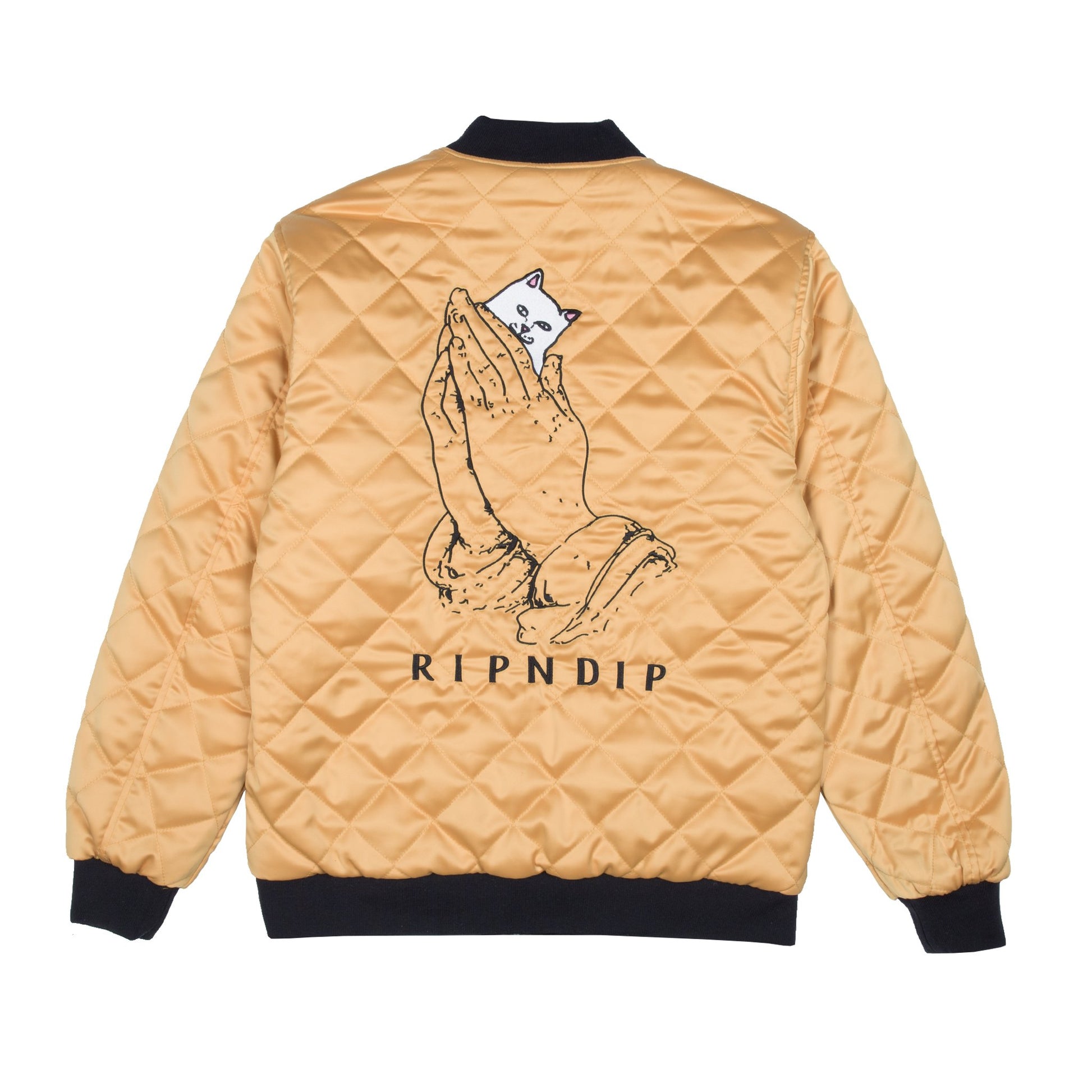 RIPNDIP - Praying For Nermal Men's Quilted Reversible Jacket, Black/Yellow