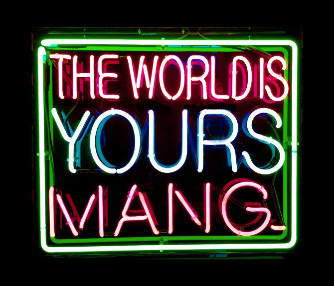 Socks are based on a 2011 neon piece from artist Patrick Martinez.