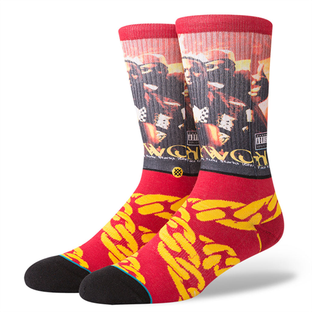 Stance Anthem pays tribute to Raekwon and his solo debut album, Only Built 4 Cuban Linx. Features the the album cover artwork on red socks with yellow link accents.