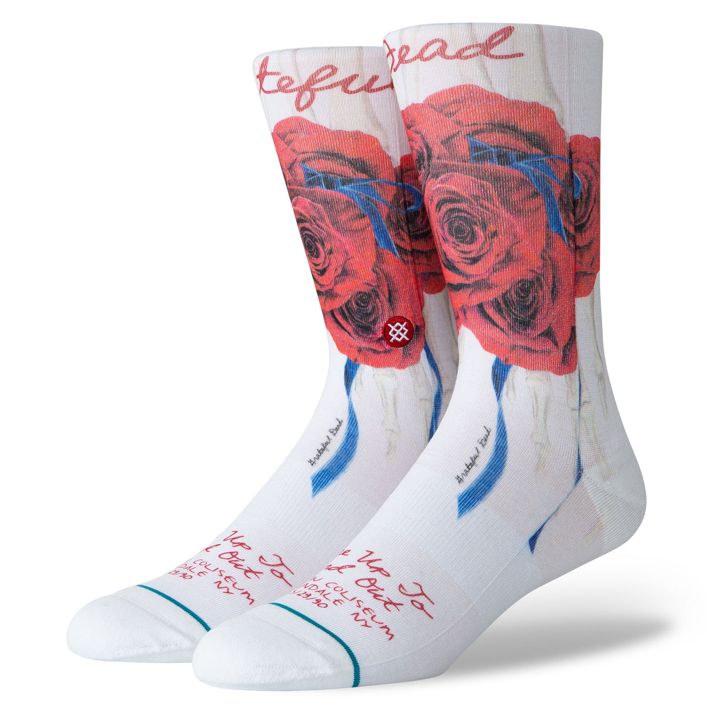 Part of Stance's collection with Grateful Dead, these socks feature rose artwork and commemorate the legendary Nassau Coliseum show with Branford Marsalis. They say "Wake Up to Find Out" Nassau Coliseum, Uniondale NY 3/29/90 across the toe.