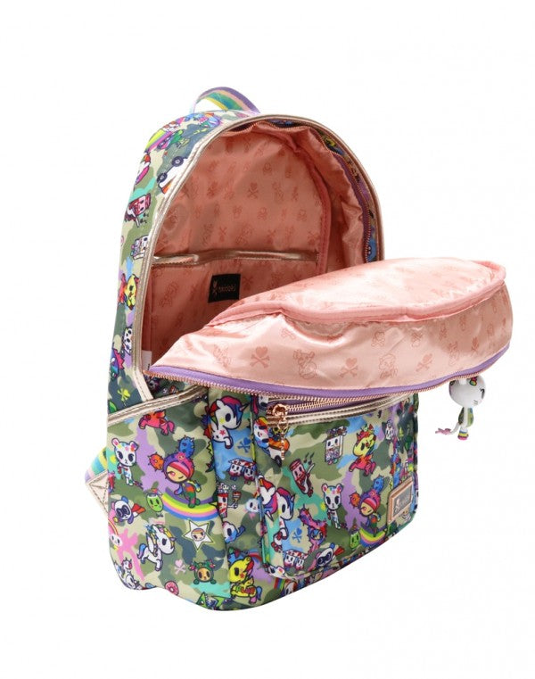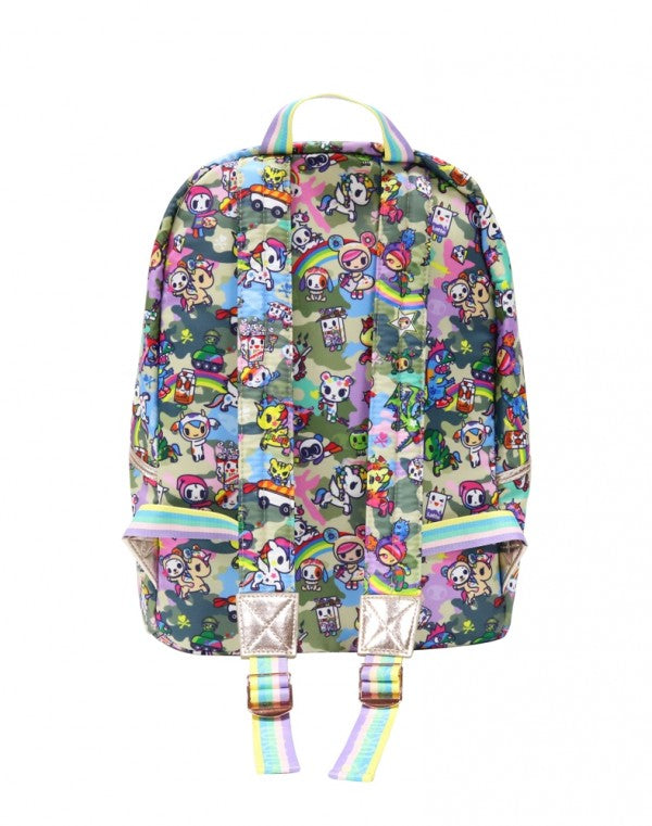 Stay undercover cute with the new Camo Kawaii Collection! Features an all star cast of tokidoki characters on a sublimated camo pattern. Take this backpack with you to pack all of your essentials!
