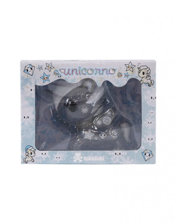 Ring in the holidays with this festive crystal clear Unicorno. Features fun holiday snowflakes, diamonds, and frosted sparkling accents. A dreamy and whimsical collectible!
